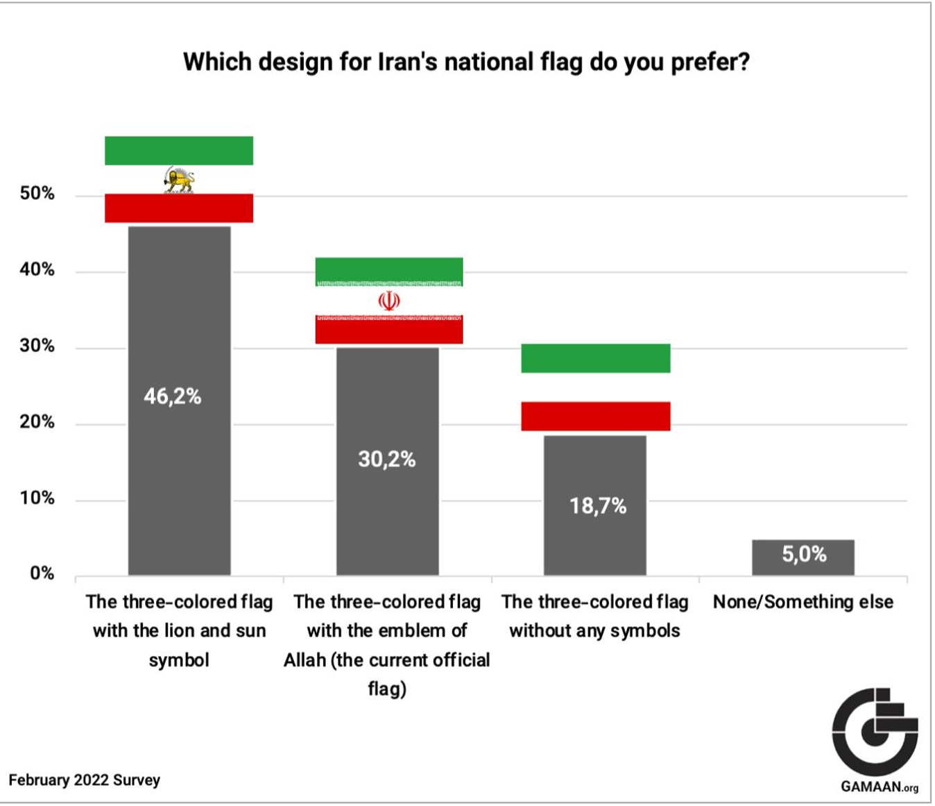 - The three-colored flag with the lion and sun symbol 46.2%